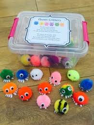 Los Criaturas silenciosos viven en un frasco insonorizado y solo salen cuando estás quieto. Los Ruidos fuertes lastiman sus oídos, pero susurrar está bien. Les encanta sentarse en los escritorios de los estudiantes para observar y aprender de los estudiantes. No les importa que les dé palmaditas, pero se asustan si alguien los recoge o intenta jugar con ellos. Cuando los saco del frasco, los coloco en el lado superior izquierdo de la mesa. Si el alumno es demasiado ruidoso o comienza a jugar con ellos, la criatura silenciosa se mueve al otro lado de su mesa. Si continúan haciendo ruido, regresan a su tarro. Al final de la clase, quien tenga una criatura silenciosa en su mesita puede tener un sticker,, una plástilina, ser el primero en sacar su lonchera o cualquier incentivo que tenga. A veces, simplemente tener a una criatura silenciosa en su mesita es una recompensa suficiente.